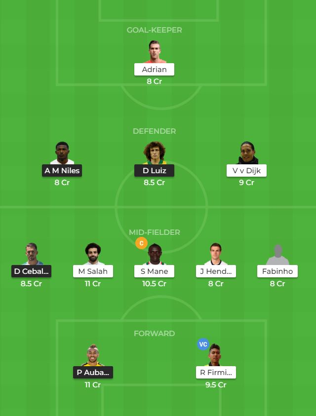 We shall look at the Dream11 team for the game between Liverpool and Arsenal.