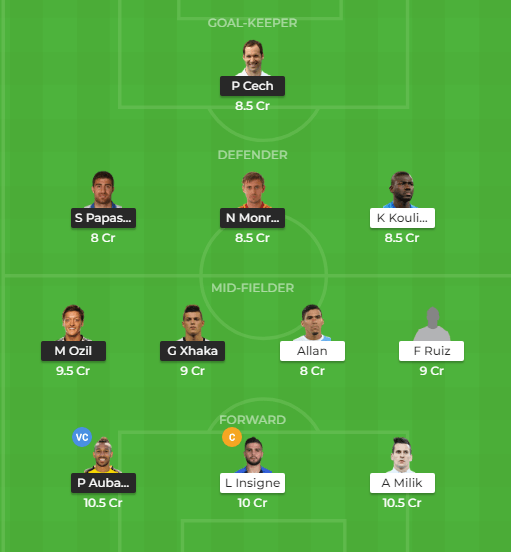 Mesut Ozil and Granit Xhaka are in my team because both the players will have a significant role to play in this game. While Ozil would aim to create chances for the striker(s) upfront, Granit Xhaka will attempt to keep the attack at bay, as well as stretch the Napoli defence further.