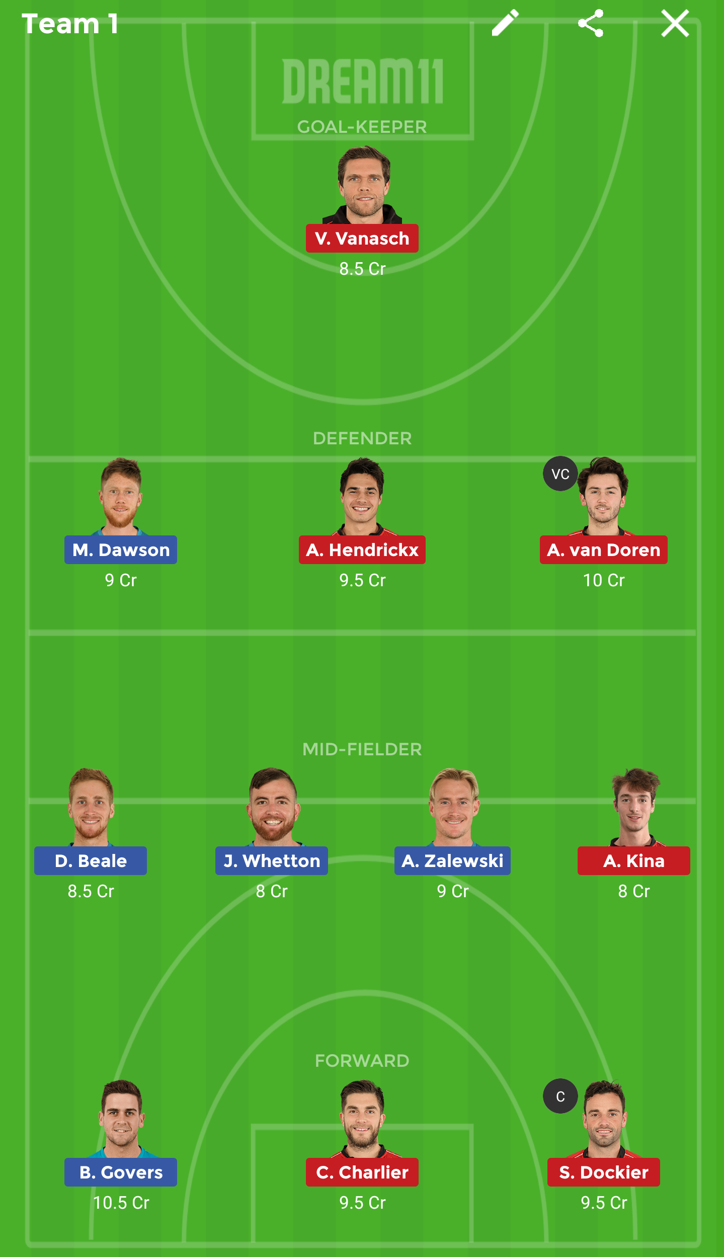Both our picks are coming in from Belgium with striker Dockier our captain while defender Doren has been selected as the vice-captain.
