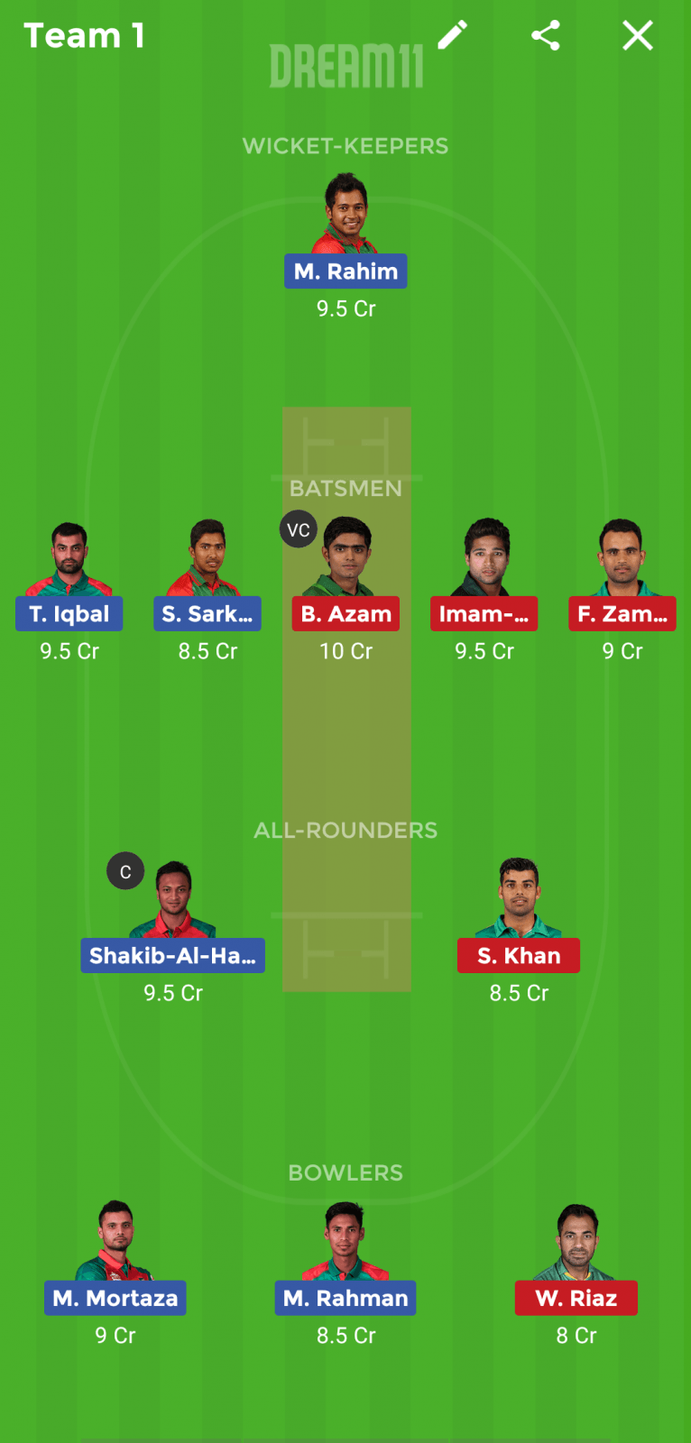 I have picked 3 pacers for this match. The 2 Bangladeshi pacers in Mashrafe Mortaza and Mustafizur Rahman have been bowling the perfect lines over the last few matches. They picked up many wickets at critical junctures even in the tri-series. They bowl a good number of overs in the death as well which might give me some extra points.