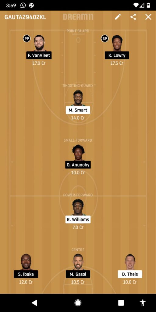 Serge Ibaka endured a blip in form in game 3 but that doesn’t dissuade us from opting for his services for the day’s scrimmage. One of the most imperious names, the centre has been largely flawless this season with his ability to guard his side’s paint helping the club thrive.