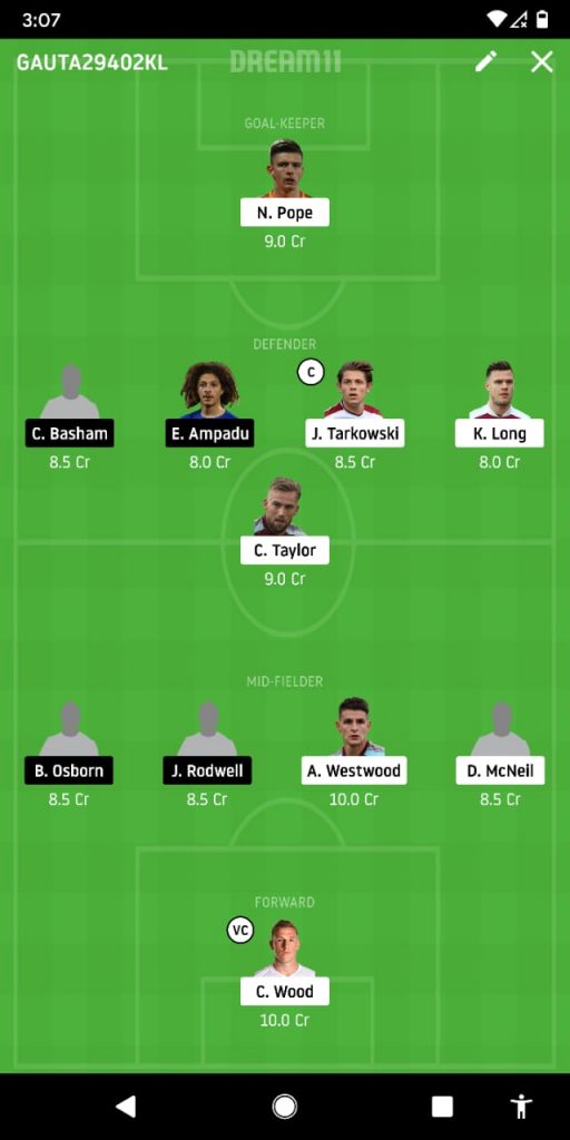 With a cleansheet likely for Burnley, James will captain our side while Wood is the vice-captain.
