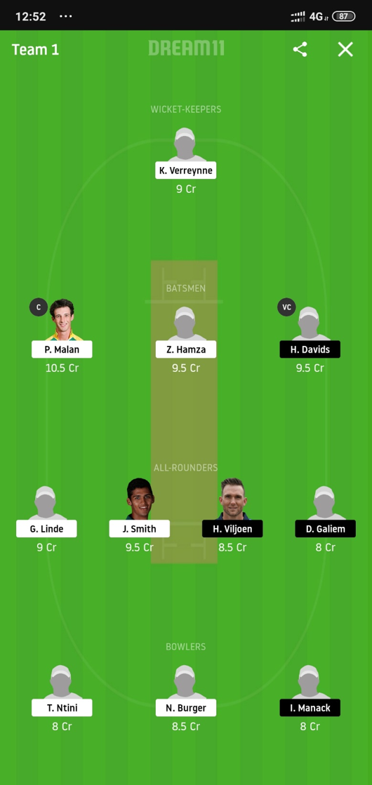 - H.Davids (Price 9.5):- Davids is a very good stroke-player. He plays with aggressive intent and is often successful in it. He was brilliant in the Mzansi Super League too.