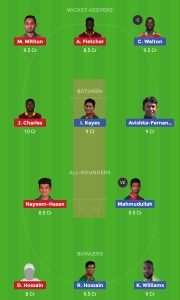 Chadwick Walton, Avishka Fernando, Imrul Kayes, Mahmudullah (C), Nasir Hossain, Ryan Burl, Nurul Hasan (WK), Muktar Ali, Rubel Hossain, Kesrick Williams, Mehedi Hasan Rana