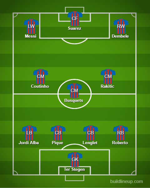 Samuel Umtiti’s suspension opens the door for Clement Lenglet to start, while Sergi Roberto and Jordi Alba will play as the full backs.
