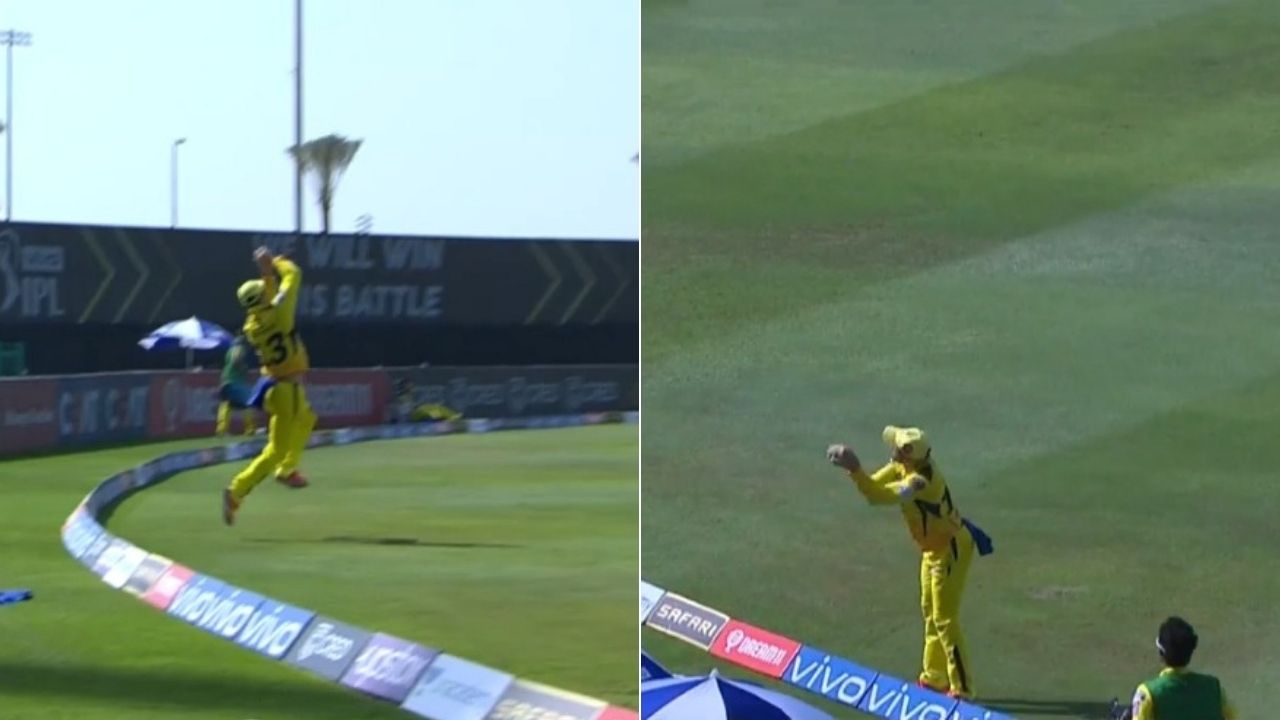 During the 38th match of the ongoing 14th season of the Indian Premier League between Kolkata Knight Riders and Chennai Super Kings in Abu Dhabi, Chennai Super Kings batter Faf du Plessis continued with his tendency of grabbing acrobatic boundary catches.