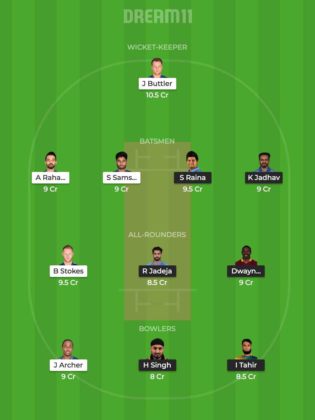 Vice-Captain: Imran Tahir(if CSK bat first)/Ben Stokes(if RR bat first)