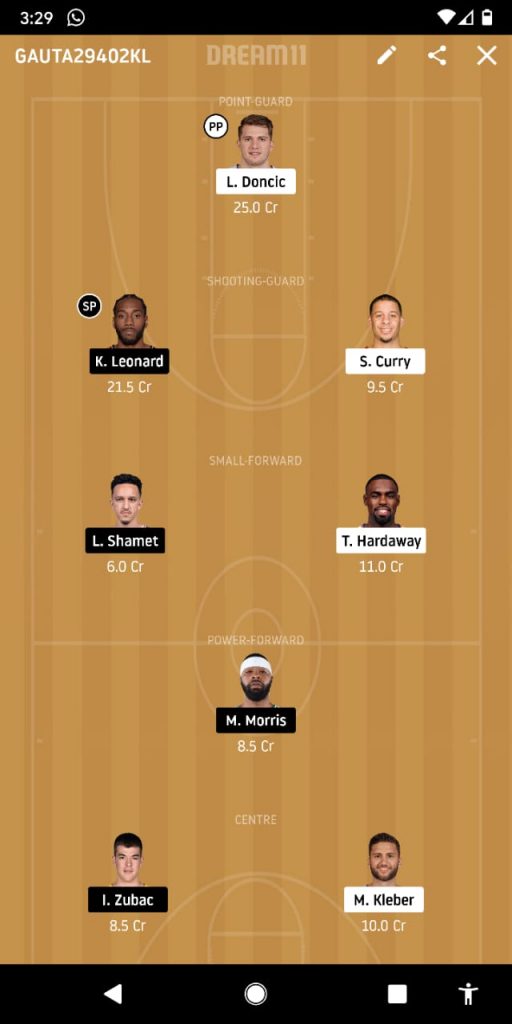 Doncic, Leonard, Curry, Tim, Landry, Morris, Zubac, Kleber