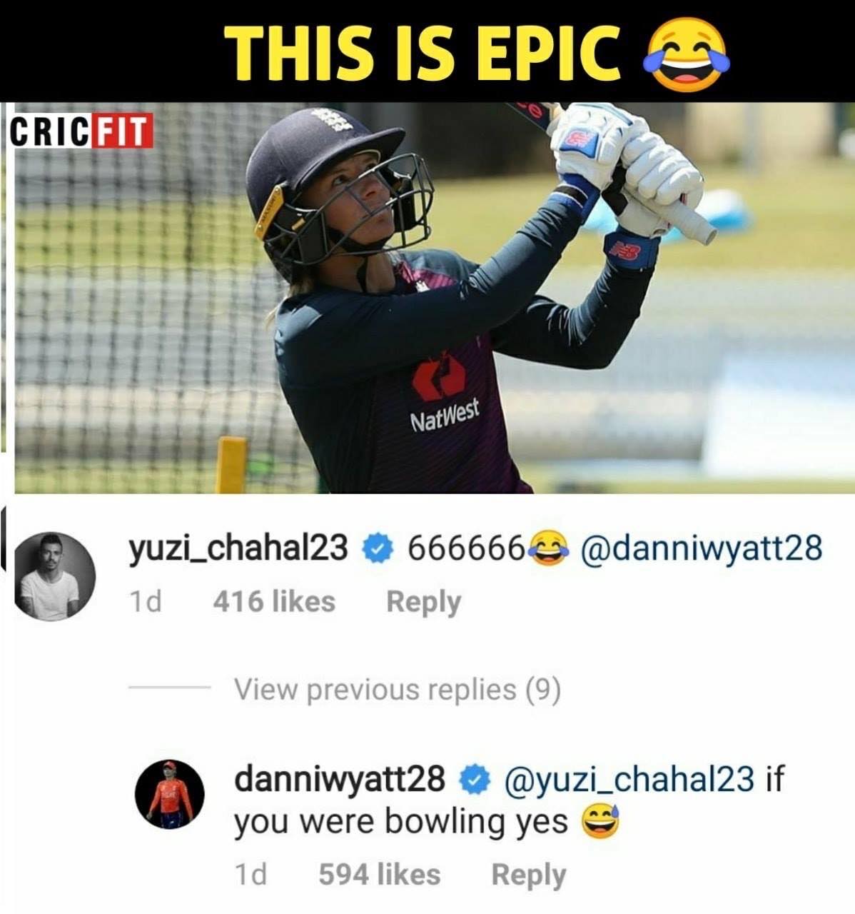Danielle Wyatt trolls Yuzvendra Chahal with hilarious reply on her Instagram post. The two regularly engage in banter on Social media.