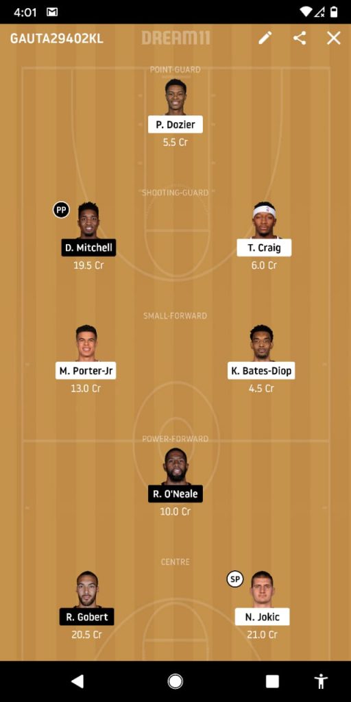 Dozier, Donovan, Craig, Michael, Keita, Royce, Jokic, Gobert