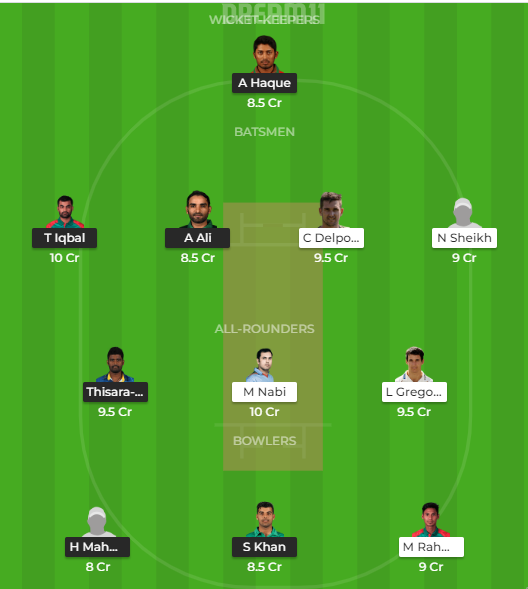 Tamim Iqbal, Anamul Haque (C & WK), Mominul Haque, Mahedi Hasan, Ariful Haque, Asif Ali, Thisara Perera, Mashrafe Mortaza, Faheem Ashraf, Hasan Mahmud, Shadab Khan