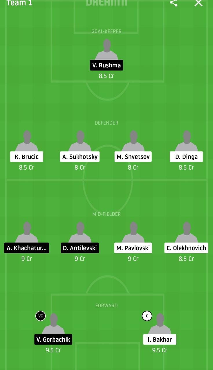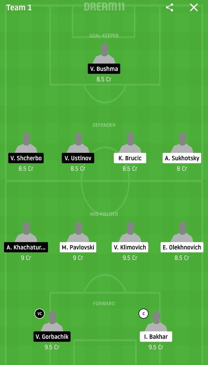 Minsk’s top scorer with the 1 goal and 1 assist, Evgeni Shikavka is the first name to be inculcated into our Dream 11 side along with his counterpart Ivan Bakhar who has scored the lone goal as well for his side. From the opposition elsewhere, his goal the last time around in the side’s 1-0 win sees us rope in Valeri Gorbachik for the day’s forthcoming affair.
