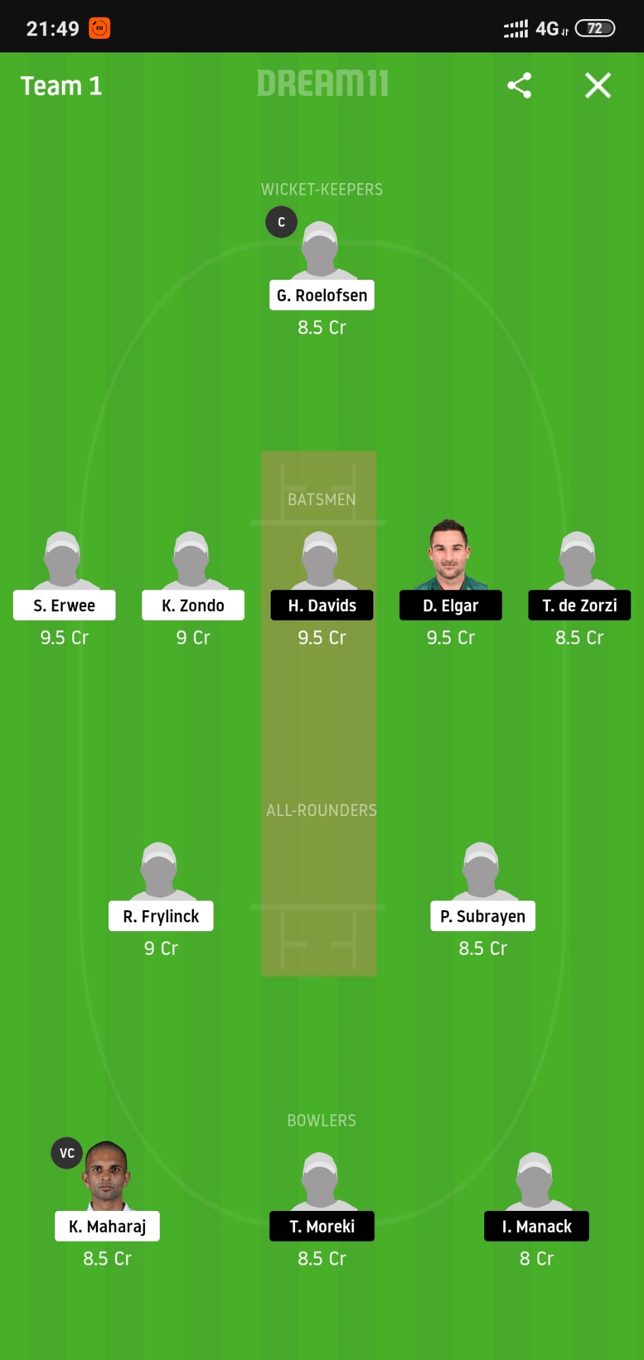 S.Erwee (Price 9.5) and K.Zondo (Price 9) from the Dolphins will complete our batsmen as Erwee has been in superb form and scored a hundred in the last game whereas Zondo is also a solid middle-order player.