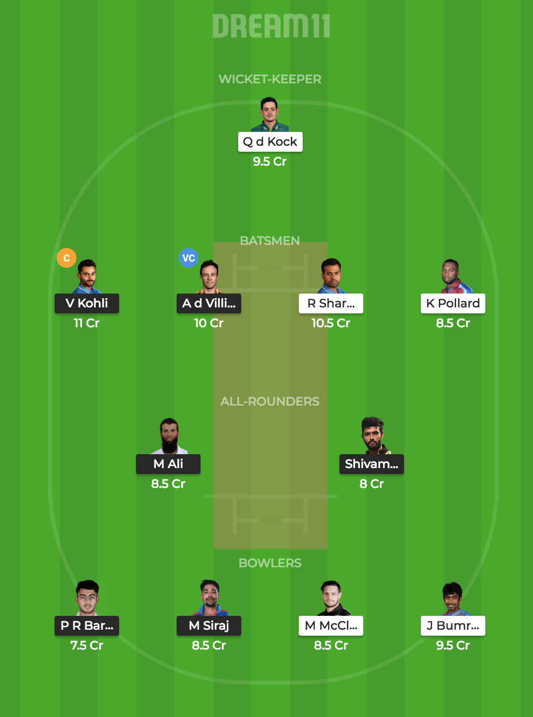 Virat Kohli and ABD would walk into my team for this game, as I expect them to go ballistic at the Chinnaswamy tonight. QDK would be the first MI player that I bring in. MI play twice in three games and with the kind of form QDK is in(5 fifties and a 100 in the last 6 ODIs, it would be foolish to leave him out).