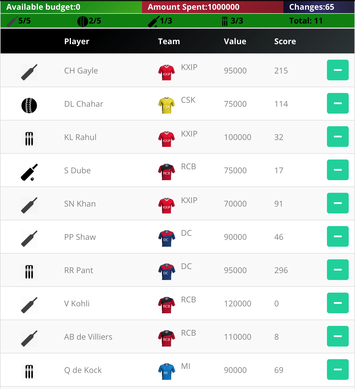 Now, with most of the highest priced Dream 11 players featuring in Thursday’s, the only way I can complete a good enough XI is to bring in a ‘dummy player’ worth 7.5 cr(that’s the lowest priced player for this game). I suggest this strategy if you want to have 10 good players in your side, else you will have to settle with a few mediocre players to make your XI.