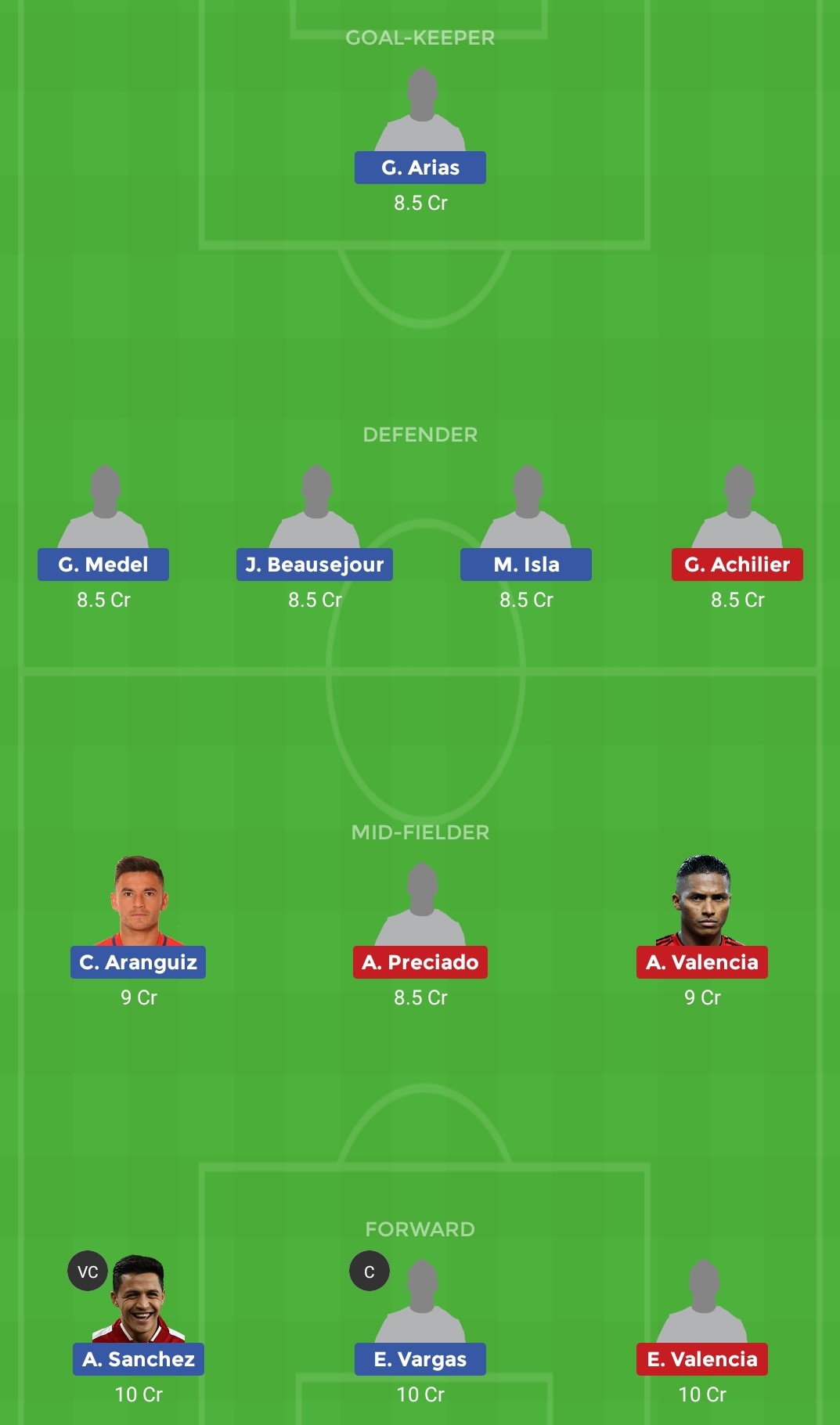 Gabriel Arias: Chilean goalkeeper Arias my obvious choice for this game. He gave a good performance against Japan saving three shots, two from inside his own half. The 31-year-old is in good form and will most likely keep another clean sheet against a weak Ecuador.