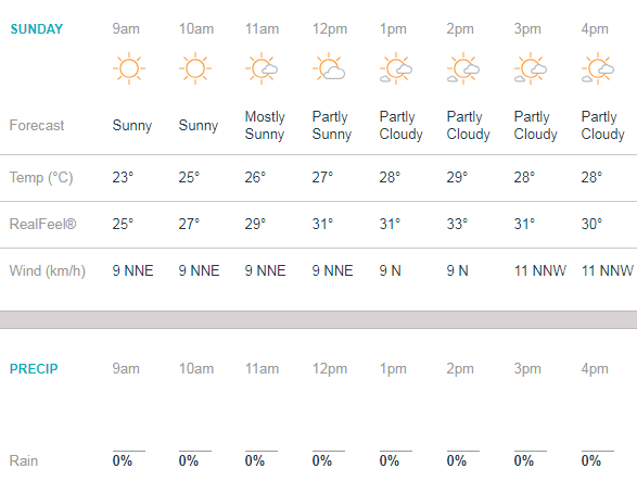 The strange British weather continues to intrigue as the temperatures still would be pretty comfortable by English standards. It would be mostly sunny throughout the day. There is no forecast of rain, though it can get partly cloudy at times.