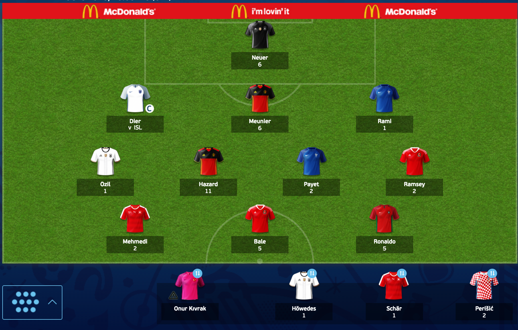 I will be making just one substitution for today’s two games, and that is getting Dier in for Howedes. Howedes featured for just 20 minutes in the game against Slovakia and thus could garner just one point, something that just isn’t acceptable at this stage of the tournament.