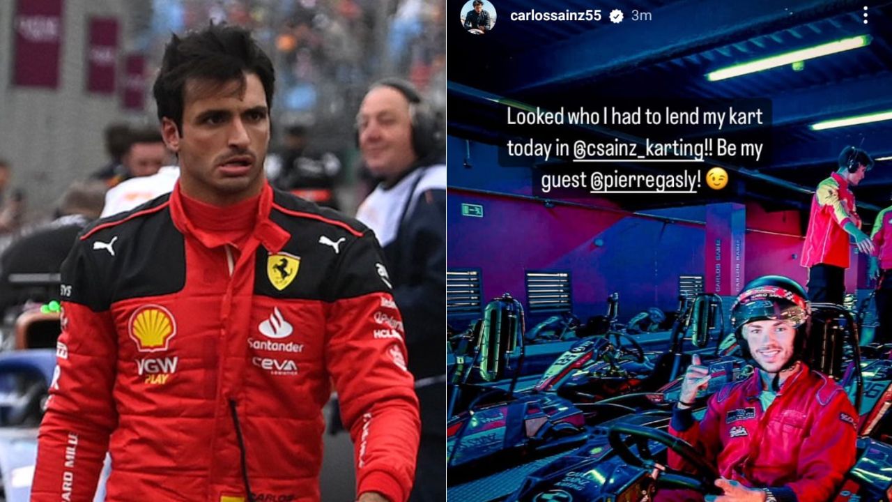 Taking to his social media accounts, Carlos Sainz shared an image of him having shared one of his karts with Pierre Gasly. He captioned the post by asking Gasly to be his ‘guest’.