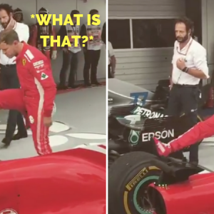 WATCH: Vettel rolling Hamilton’s car with his foot