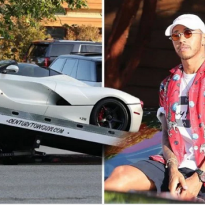 Lewis Hamilton waits for truck to tow away his Ferrari