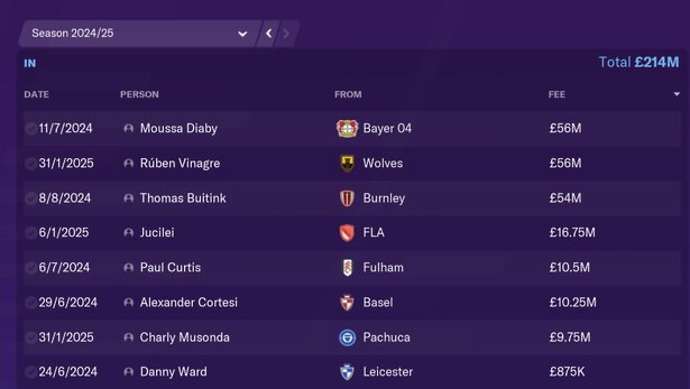 Favre continues to spend heavily as he brings in Moussa Diaby, Ruben Vinagre, Thomas Buitink, Charly Musonda and Danny Ward for £214 million. James Maddison moves back to Norwich for 35 million while Henderson and Diogo Dalot move to Newcastle and Sparta Moscow respectively.