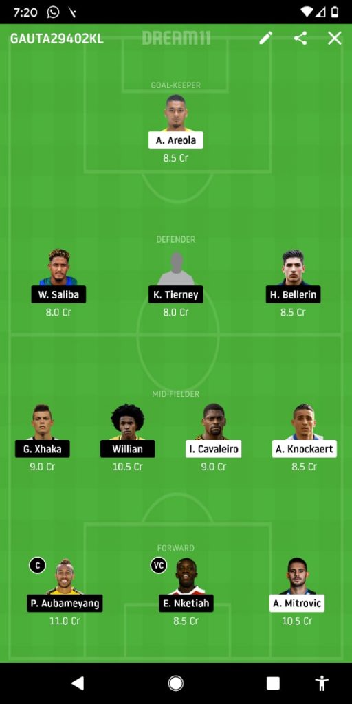 CB Rob Holding joins up to wrap up the triad from the side with Arsenal likely to emerge with a cleansheet today.