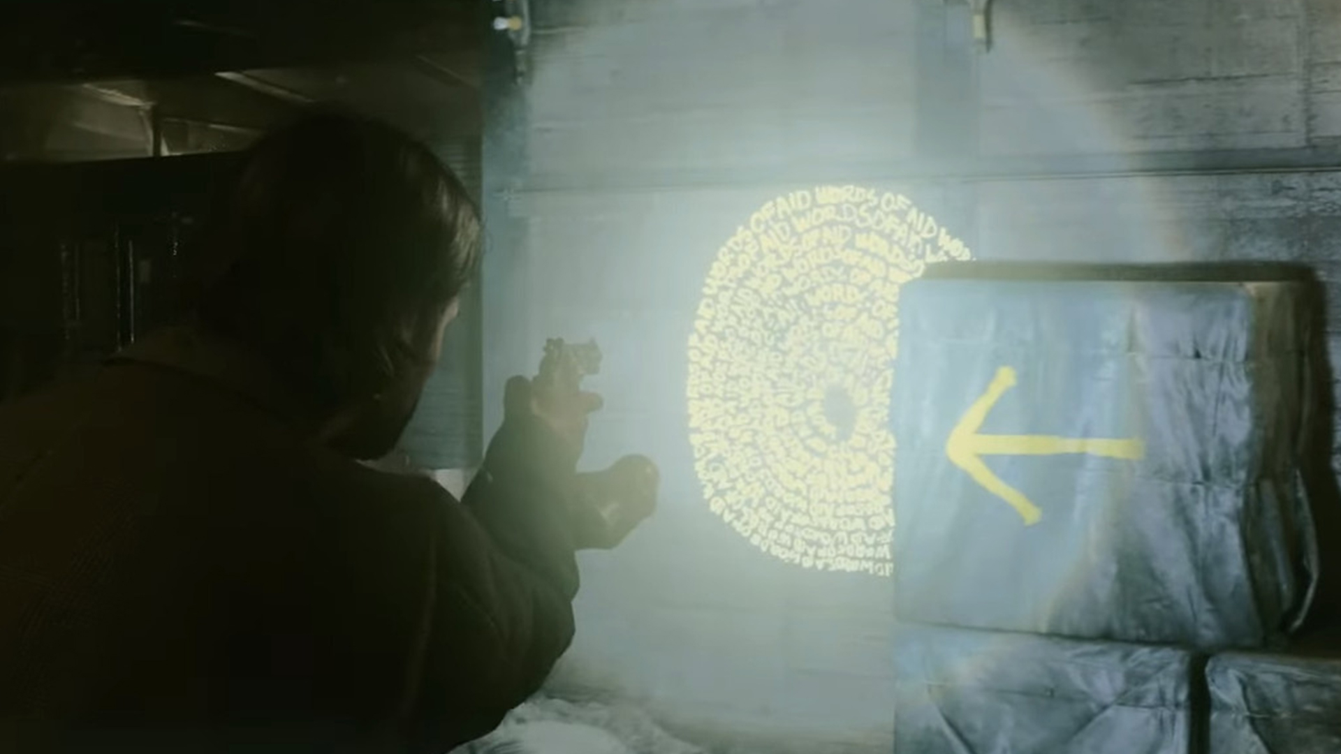 Players will come across spirals of yellow words across the Dark Place. These graffiti-like spirals are Words of Power, the in-game boost for Alan Wake to improve his skills. But to collect them, the players should point their flashlight toward the center of those yellow spirals.