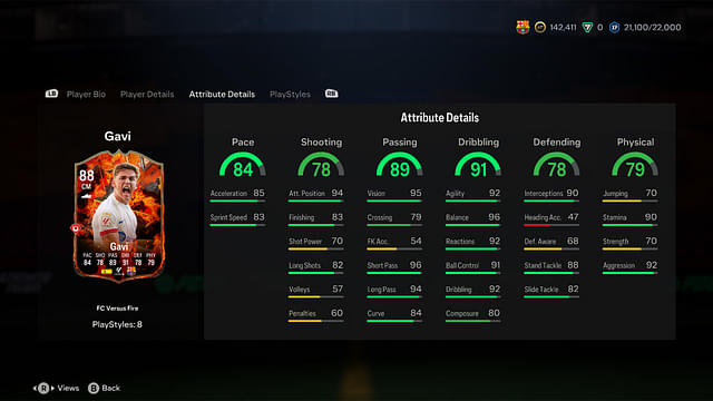 The Spaniard’s base Ultimate Team card is an 83-rated Rare Gold. EA Sports recently released the 88-rated Gavi Fire and Ice cards which have some impressive stats. However, the Fire edition focuses on dribbling with First Touch Playstyle+, while the Ice version focuses on passing with Incisive Pass Playstyle+.