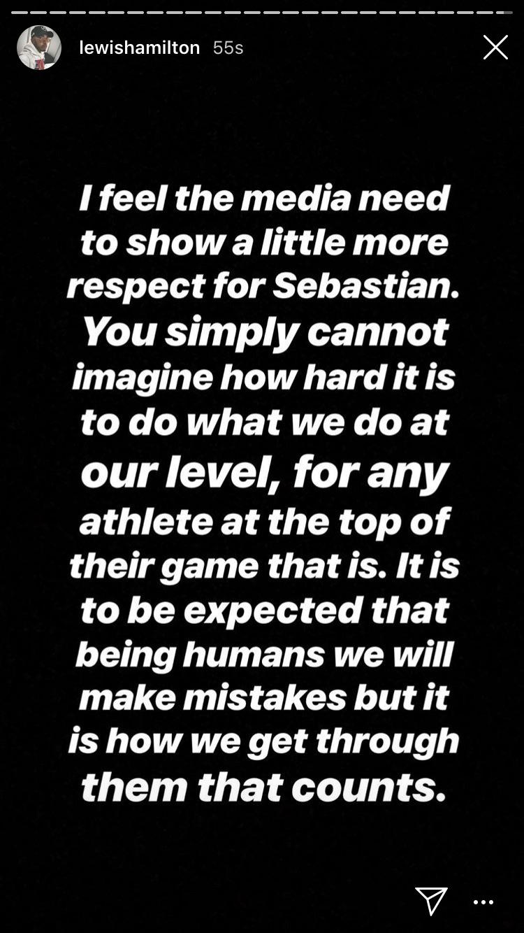 When asked about his Instagram post for Vettel, Hamilton said that as a driver’s unit, everyone should stick up for one another.