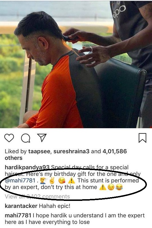 Dhoni also enjoyed the banter as he had a hilarious reply on Pandya’s post.