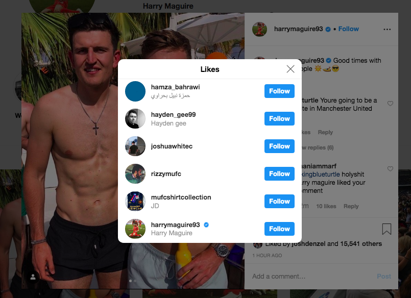 Maguire has got people talking after he ‘liked’ a comment from a fan, saying: “You’re going to be a fan favourite at Manchester United.”