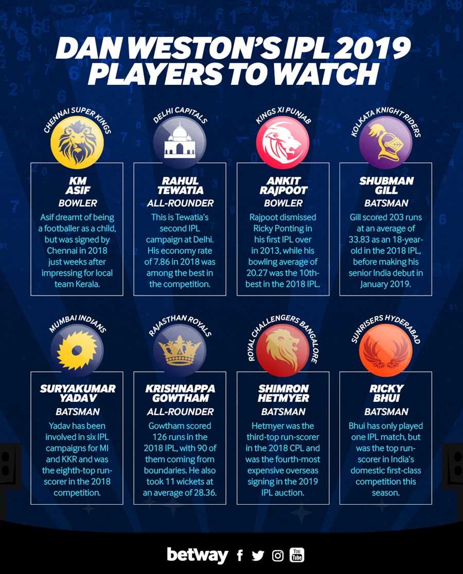 Weston uses his data – collected from millions of balls’ worth of cricket – to calculate and predict the success of cricketers in all formats around the world, including India, where the Chennai Super Kings are among the favourites to retain their title in the latest IPL betting on Betway.