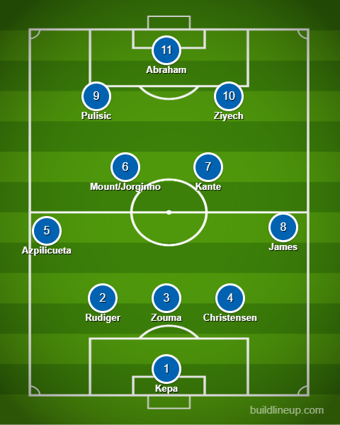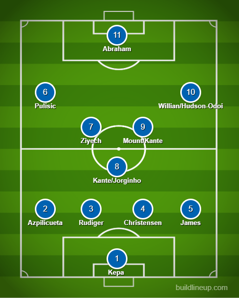 Chelsea could also play Ziyech right behind Abraham while Callum Hudson-Odoi or Willian moves to the right wing. Mason Mount then drops down to partner Kante in the midfield.