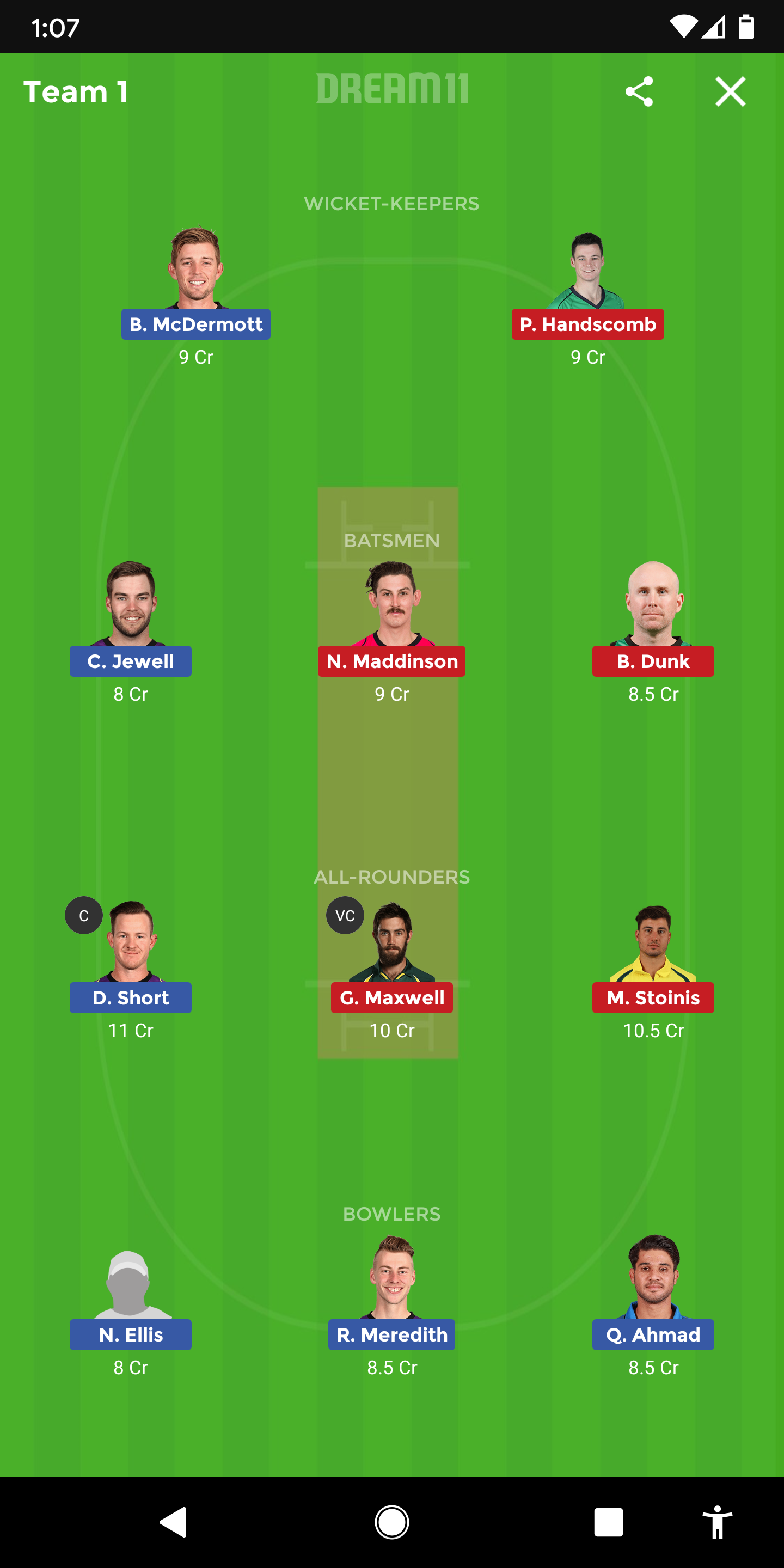 - Nic Maddinson, Marcus Stoinis, Peter Handscomb, Adam Zampa
