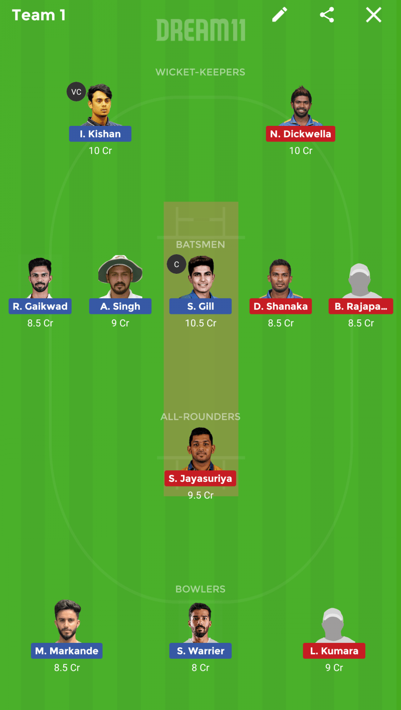 India A Vs Sri Lanka A Second One Day Best Dream 11 Team