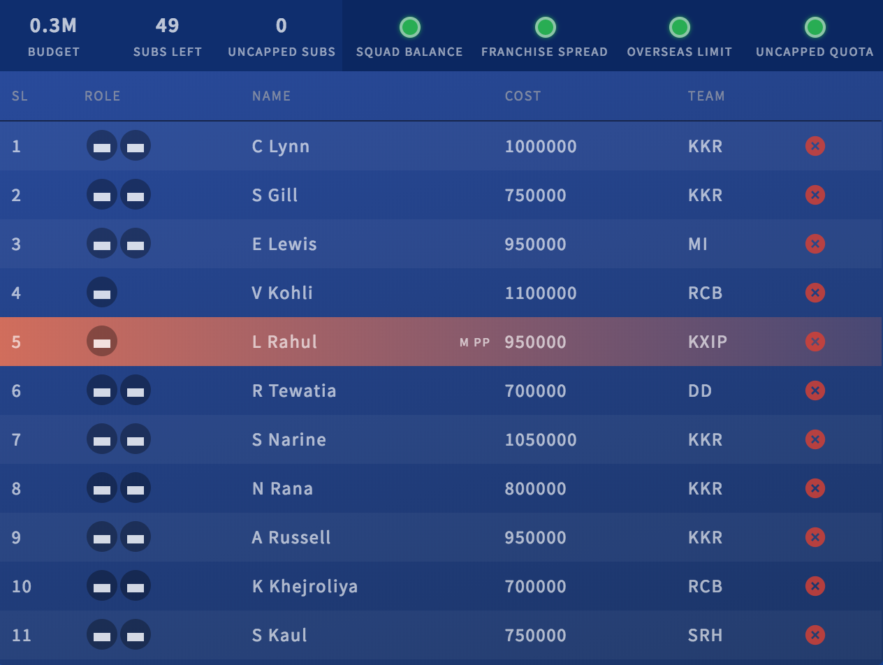 Now, KKR play a game today and day after and I already have two of their foreign players in my squad. If I get in a third, I wouldn’t be able to transfer him out before the next game, and I might have to get in AB de Villiers in(Note: Evin Lewis and Shane Watson are my other two overseas players right now).