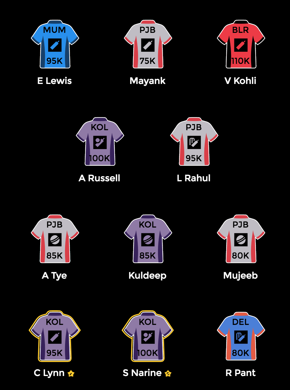 Now, I already have Andre Russell, Sunil Narine, Rishabh Pant and Kuldeep Yadav in my side for this game.