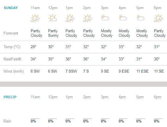 As far as humidity is concerned, there should be very less of it, something that will be wonderful for all supporters coming out for the Green game.
