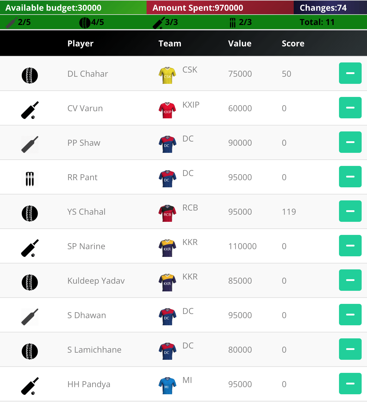 Now, I already have Prithvi Shaw and Rishabh Pant in my side for this game. With DC playing twice in two days; I would get in at least one DC player into my XI.