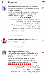 While Iran’s fans were criticised for their behaviour, many Iranians took to social media to apologise to Ronaldo and his team.