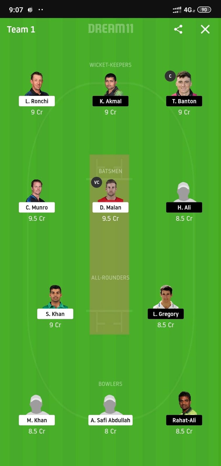 A different set of bowlers in the XI. Banton becomes the captain whereas Malan becomes his depute.