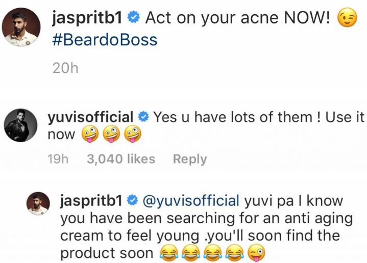 It was Yuvraj Singh, who commenced with his witty dig at Bumrah, when the latter shared a picture of him while endorsing an anti-acne Face-wash on Instagram. The caption to the advertisement read, “Act on your acne NOW”.