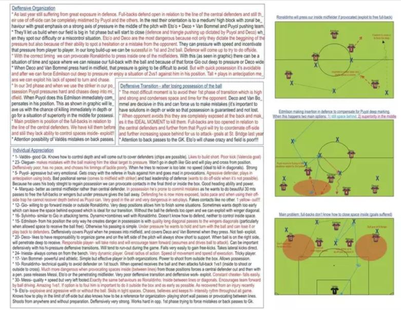 Jose Mourinho’s detailed scouting report on Barcelona’s 2005/06 side is unreal.