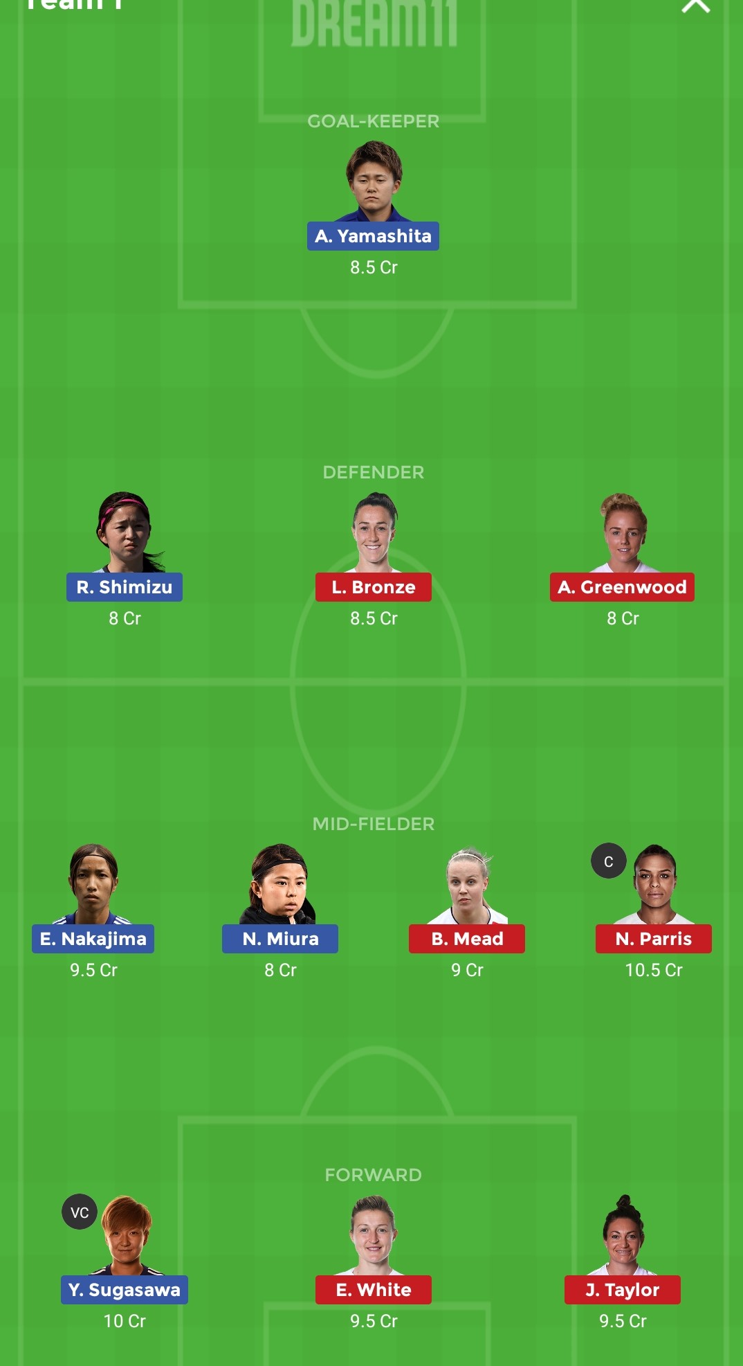 Ayaka Yamashita: Yamashita has done a good job thus far for her team in the World Cup. She’s flexible and agile, and can make flying saves across goal. The 23 year old also has a clean sheet to her name in the tournament. England have chosen two different keepers in 2 games and haven’t selected between either yet, according to reports. Yamashita seems to be the safer bet for this game.