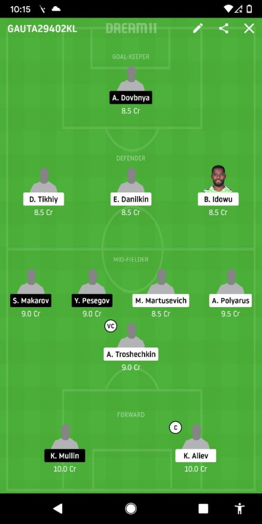 Scorer of 50% of his side’s goals, Kamil Mullin will be our pick from the visiting framework. Khimki on the other hand see their striker, Kamran Aliev be snagged by us owing to the one gaol he’s ushered his way for the side.