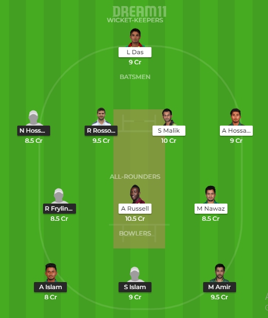 Liton Das, Afif Hossain Dhrubo, Irfan Sukkur (wk), Alok Kapali, Shoaib Malik, Andre Russell (C), Mohammad Nawaz, Farhad Reza, Kamrul Islam Rabbi, Abu Jayed Rahi, Mohammad Irfan
