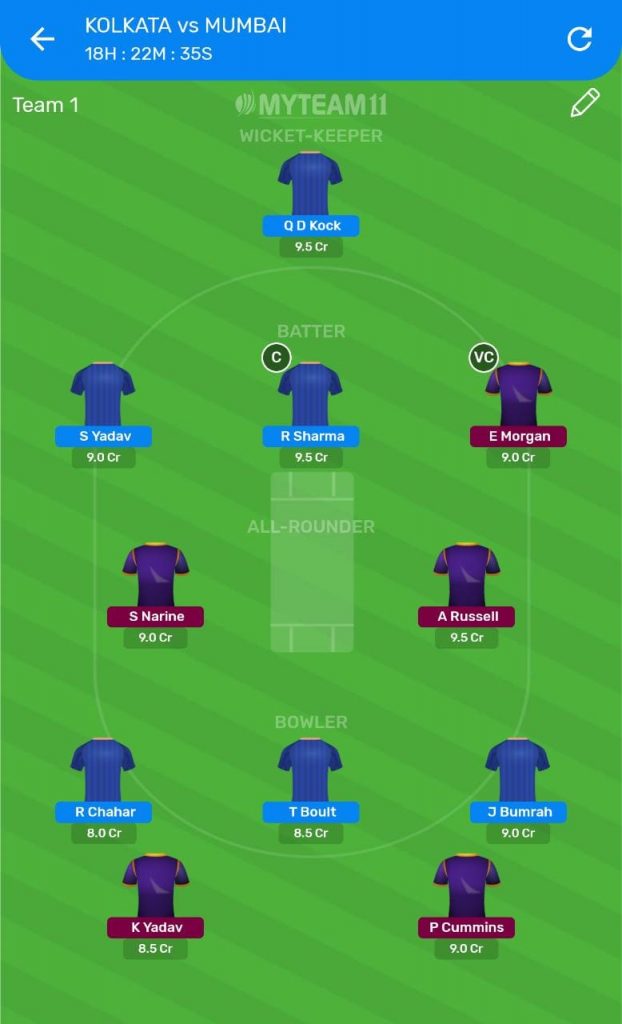 KKR Bat First: We’ll be opting for Rohit as our side’s captain while Eoin is the vice-captain.