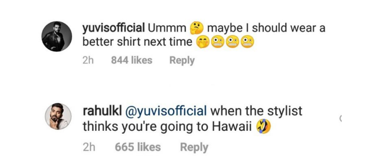 Yuvi looked in a playful mood as he took a friendly dig at his KXIP team mate. KL Rahul could also not resist but reply to such a funny comment.