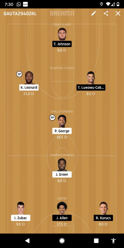 Johnson, Leonard, Timothe, George, Green, Zubac, Allen, Rodions